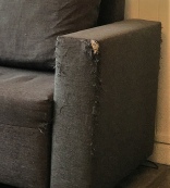 Here is the “before” shot, showing the effects of Horace the cat’s ravages. Actually, it’s quite mild compared to some cat scratching we’ve seen but we’ve been asked not to let him know that he’s not really the worst kitty in the world.