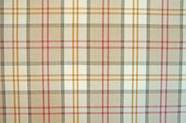 Checks and stripes - looks like wool, with lovely soft surface. Machine washable, super hardwearing.